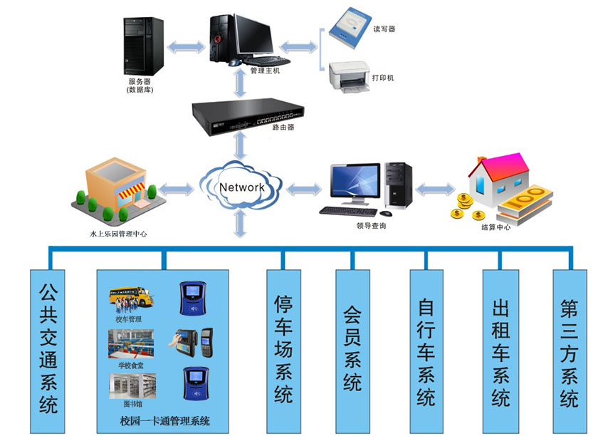 隨著智能技術(shù)的高速發(fā)展和計(jì)算機(jī)應(yīng)用的普遍推廣,在國(guó)家機(jī)關(guān)、學(xué)校、公安部門的信息管理中引入智能卡應(yīng)用系統(tǒng)正逐步成為一種趨勢(shì)。卡聯(lián)科技的校園一卡通管理系統(tǒng)將校園的人員、考勤、門禁、消費(fèi)管理集于一體,實(shí)現(xiàn)全方位智能綜合管理。該系統(tǒng)強(qiáng)化了工廠企業(yè)、辦公室、學(xué)校、小區(qū)等不同領(lǐng)域的管理理念,為客戶提供高效、安全、便利的現(xiàn)代化管理手段。卡聯(lián)科技校園一卡通解決方案包括:考勤門禁管理系統(tǒng)、飯?zhí)檬召M(fèi)系統(tǒng)、智能水控(浴室)收費(fèi)系統(tǒng)、超市POS收費(fèi)、醫(yī)療管理費(fèi)收、洗衣房收費(fèi)管理、圖書借閱管理等,以及門禁系統(tǒng),停車場(chǎng)管理系統(tǒng),員工巴士收費(fèi)系統(tǒng),智能飲水收費(fèi)系統(tǒng),并可以擴(kuò)展更多一卡通產(chǎn)品的領(lǐng)域。