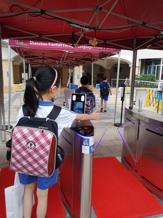 深圳鹽田外國語小學(xué)紅外測溫刷臉通道閘機項目