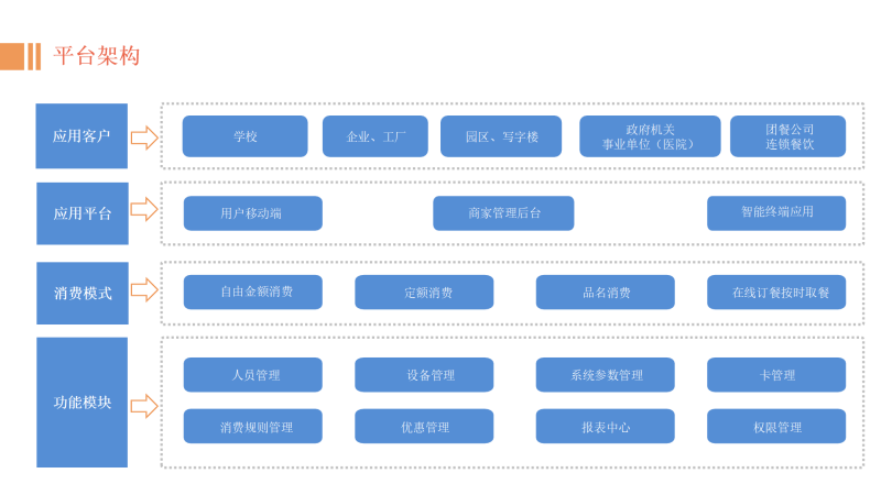 卡聯(lián)智慧餐飲一臉通管理系統(tǒng)由智能硬件設(shè)備以及大數(shù)據(jù)管理系統(tǒng)組成,系統(tǒng)包含如下7大模塊:系統(tǒng)管理、基礎(chǔ)管理、商家管理、會(huì)員管理、基礎(chǔ)報(bào)表、優(yōu)惠管理、收銀管理;